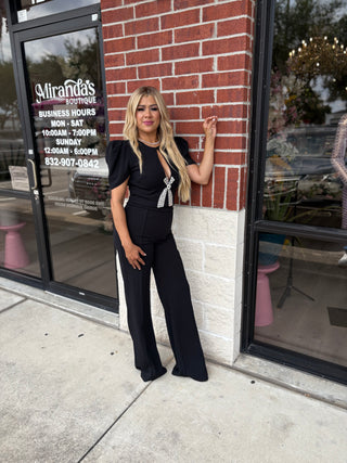 White Denim Jumpsuit with Rhinestones Buttons - Belt Included