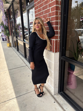 Fleur Stretchy Bodycon Long Sleeves Dress with Rhinestones Details