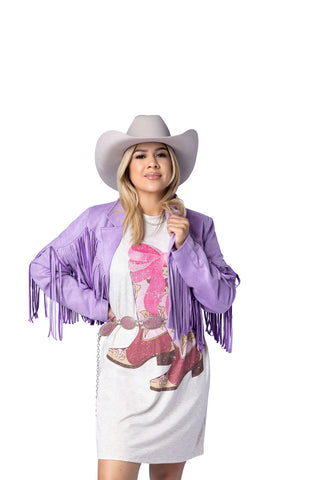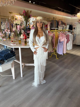 Hannah Unique Long Sleeve Dress with Fringes Sheer Details