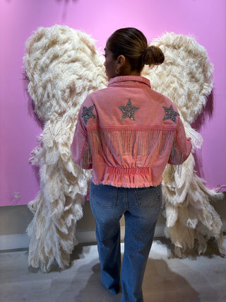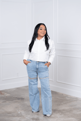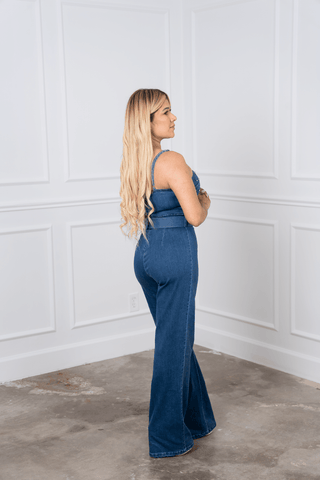 White Denim Jumpsuit with Rhinestones Buttons - Belt Included