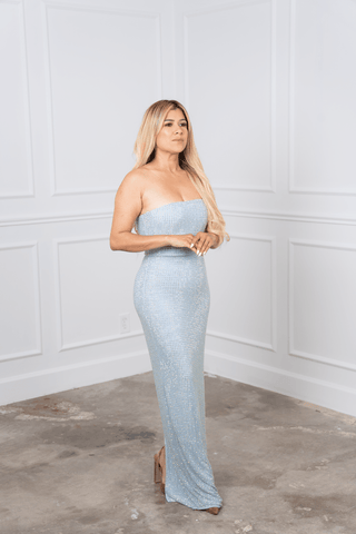 Judy Black & White Bodycon Strapless Stretchy Long Dress