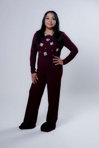 Agatha Birthday Jumpsuit Celebration Dress Sexy Rhinestones Embellished Backeless Sheer