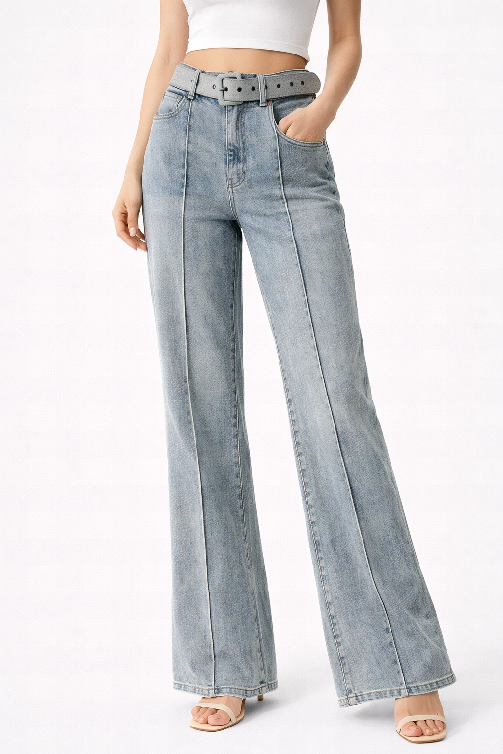 The smooth, pocket-free back creates a clean and sleek look, while the included belt adds a polished finish and helps define the waist even more. Thanks to their high elasticity, Halsey jeans sculpt the hips and thighs beautifully without feeling restrictive.