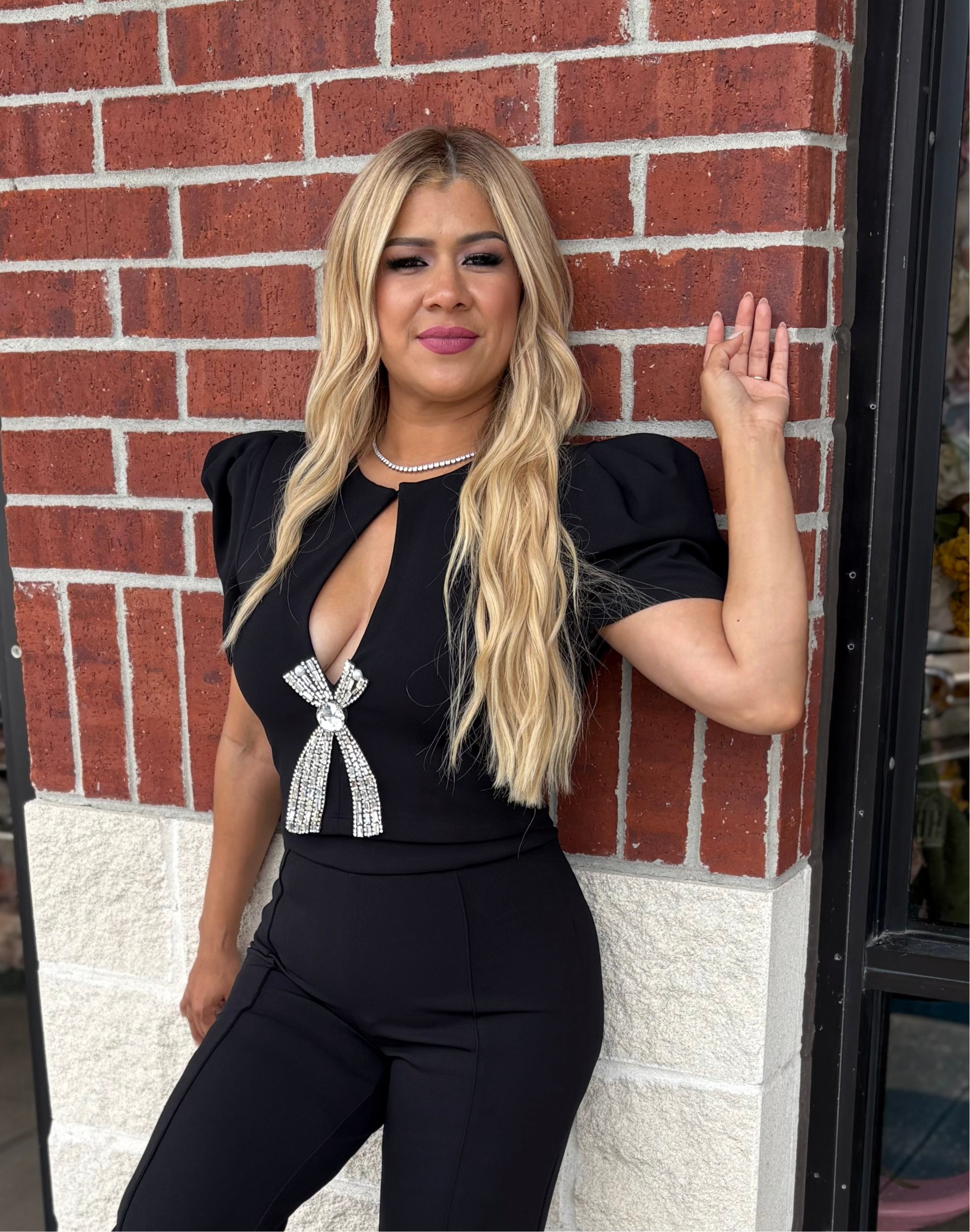 Ashlyn Crop Top with Rhinestones Details