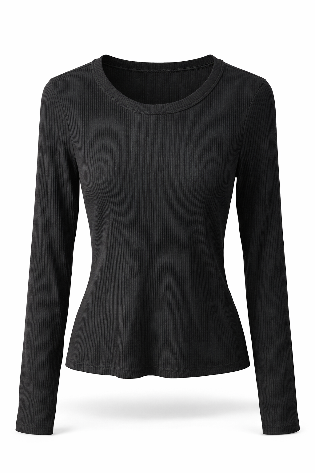 Selena Open Back Ribbed Top – Black Stretch Long Sleeve
